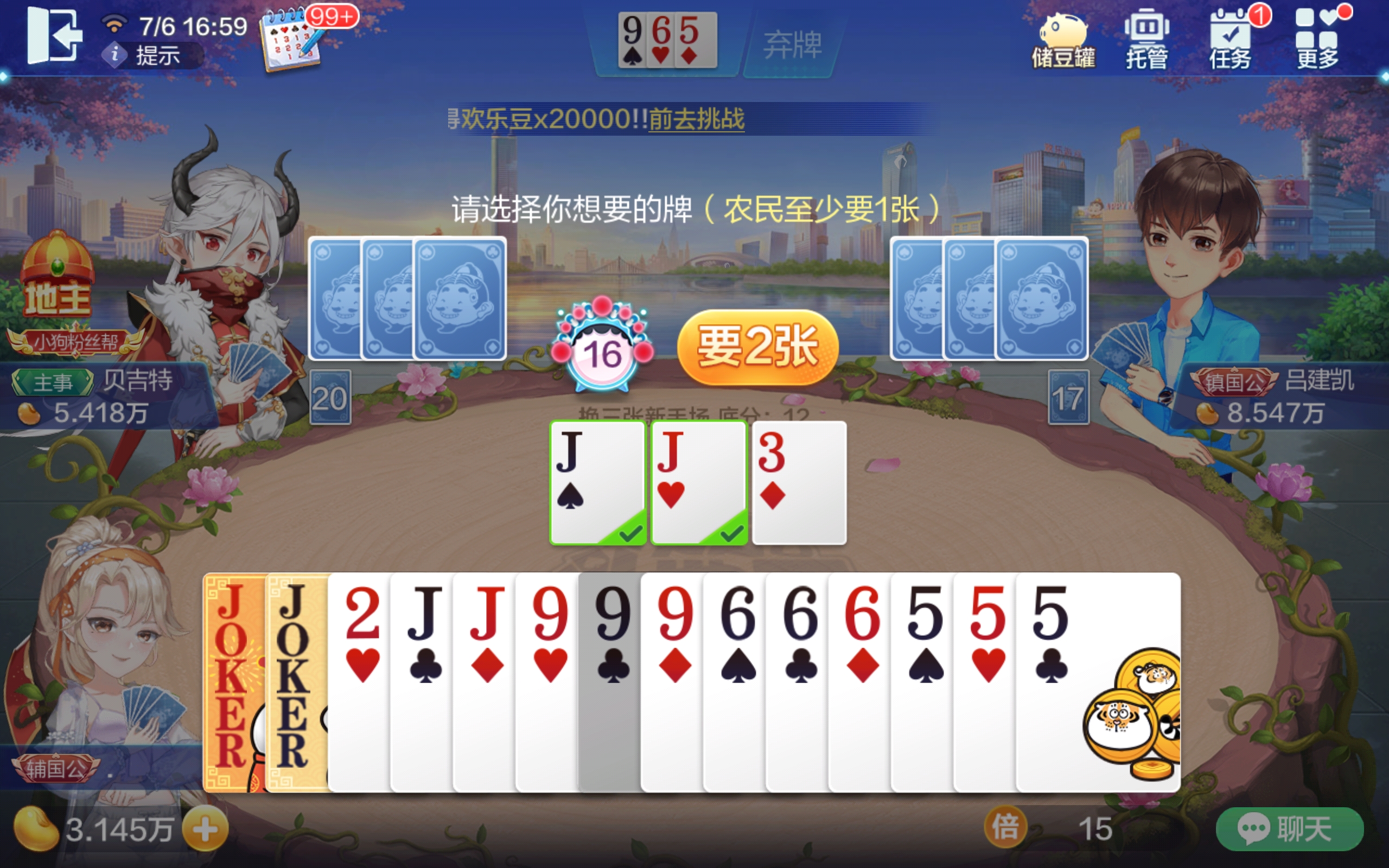 我就剩16张牌了,小心点