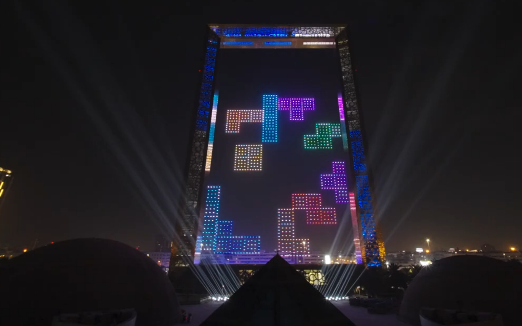 迪拜夜空惊现 “空中俄罗斯方块”,红牛这场表演刷新视觉天花板