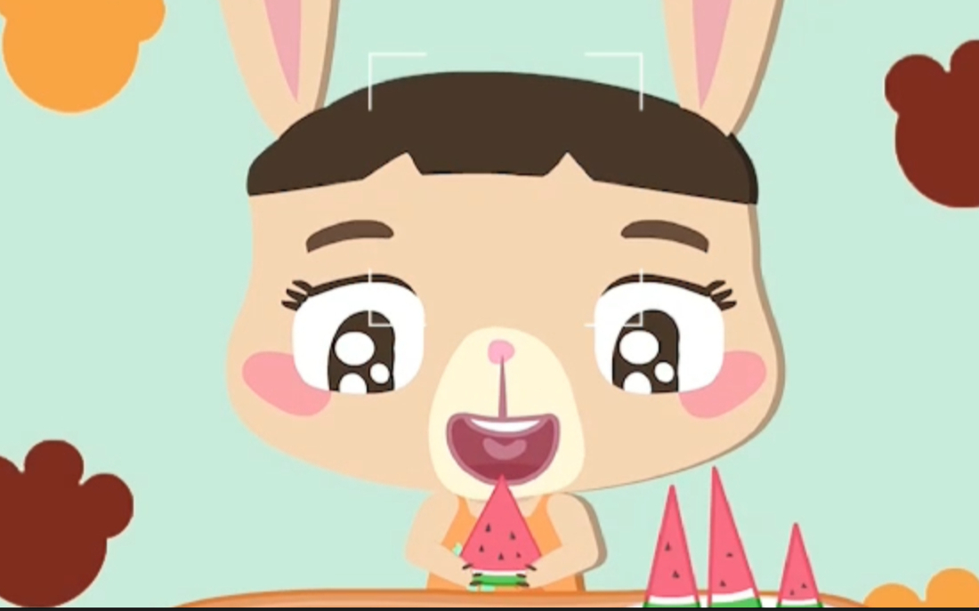 熊兔子贝贝大口大口啃西瓜