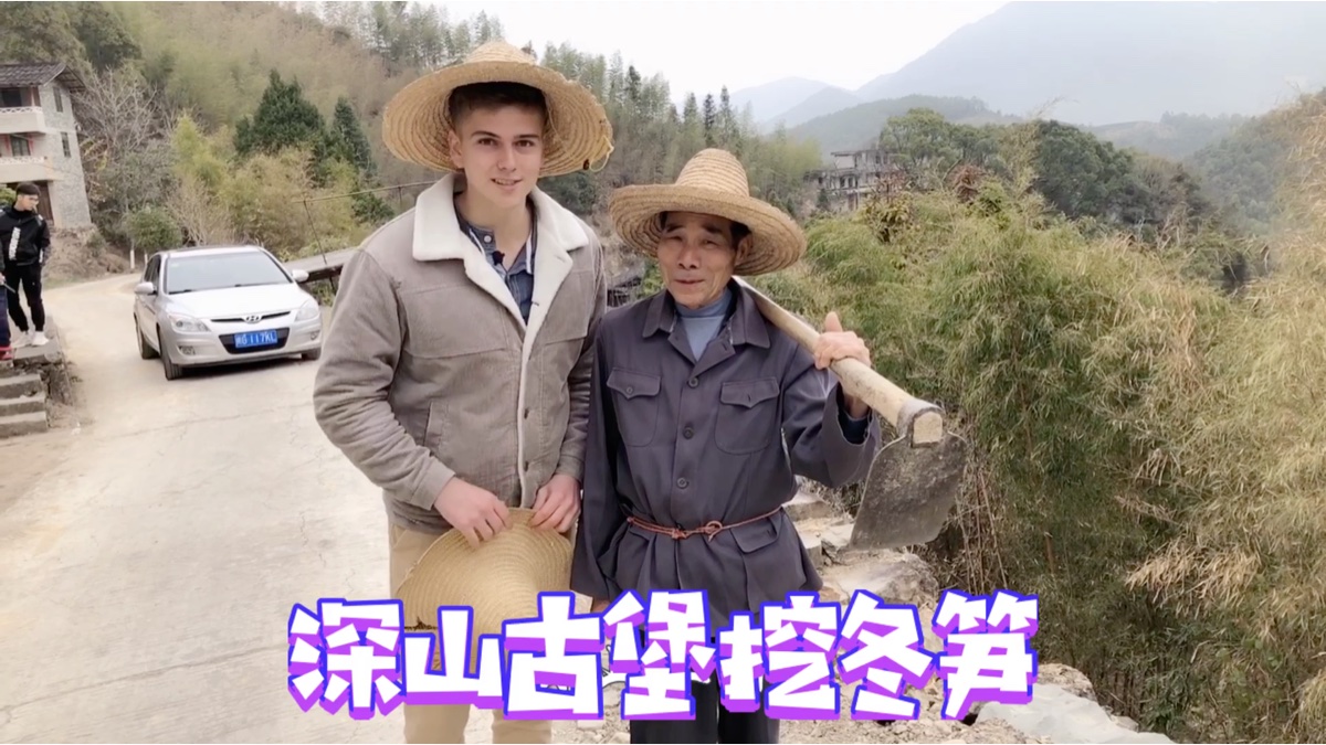 老外来到尤溪深山里的古堡,和古堡主人去体验生活,竹林挖笋!做美食!