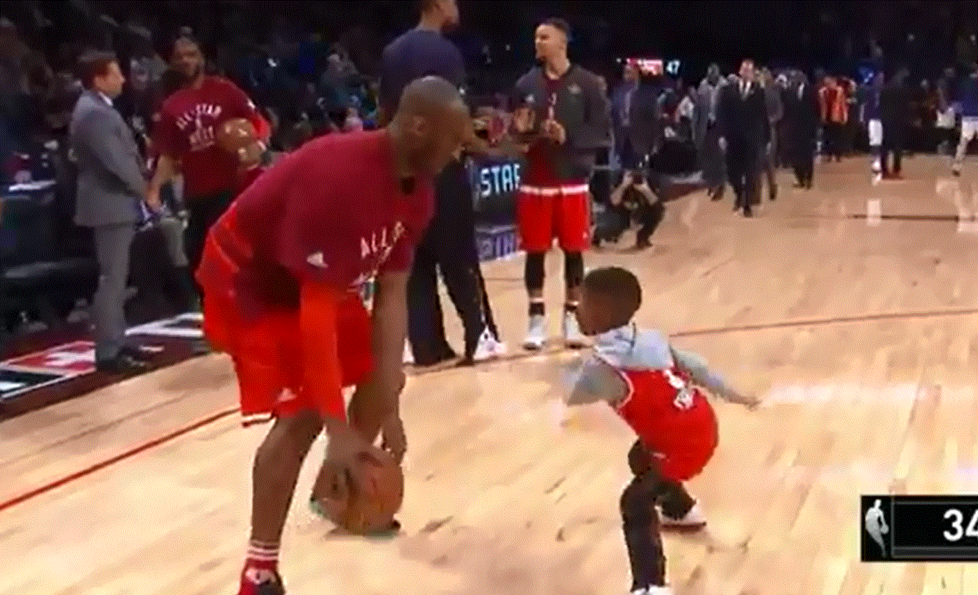 有爱的科比陪韦德和保罗儿子玩球