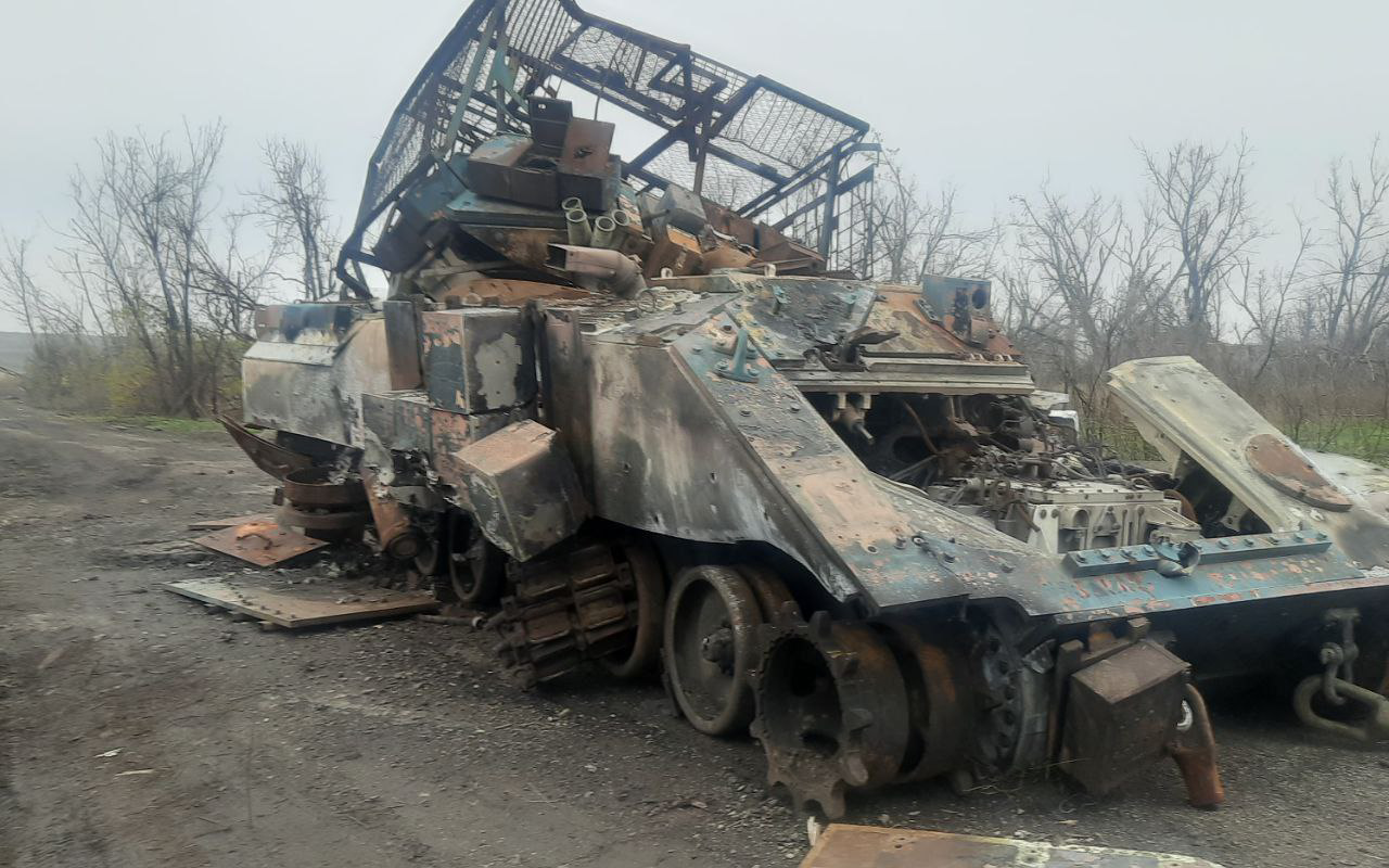 2025.12.22,顿涅茨克人民共和国,俄近卫第57摩步团的抢修分队,拖走了一辆摧毁的布雷德利。