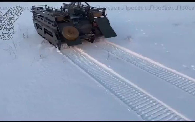 俄军一种新型的放飞FPV的UGV地面无人作战车。