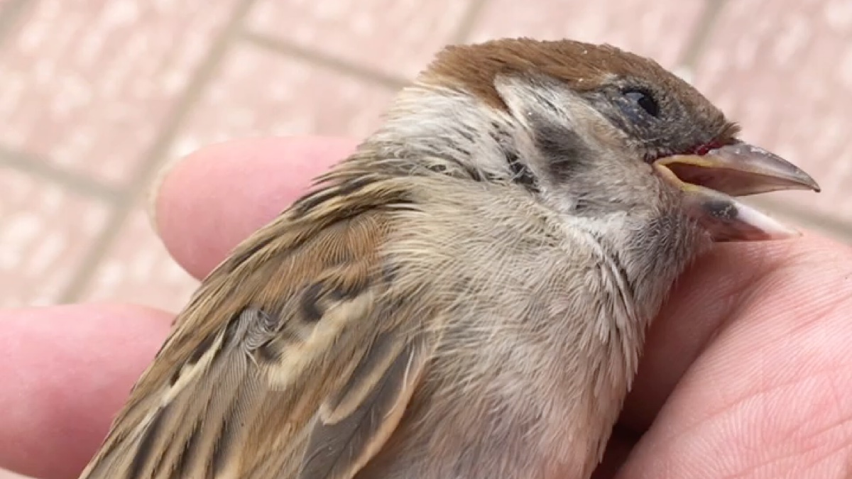 撞在玻璃上的小麻雀