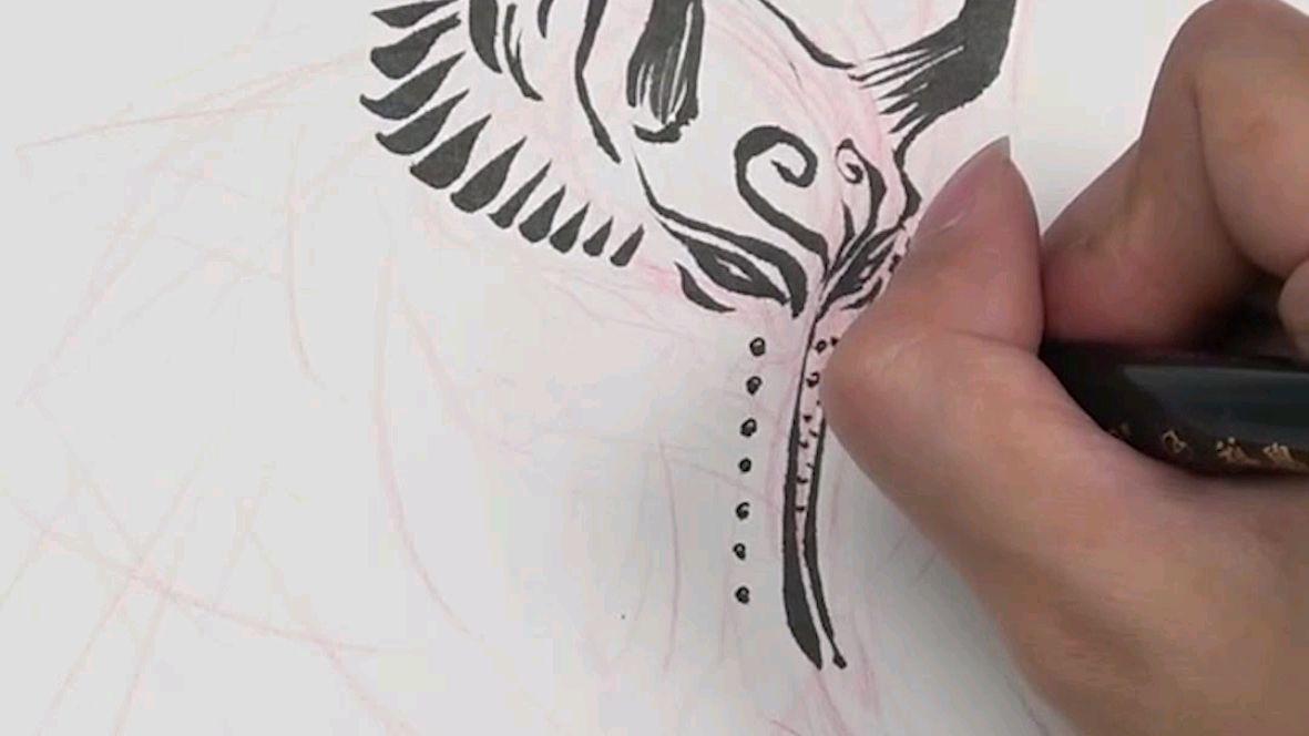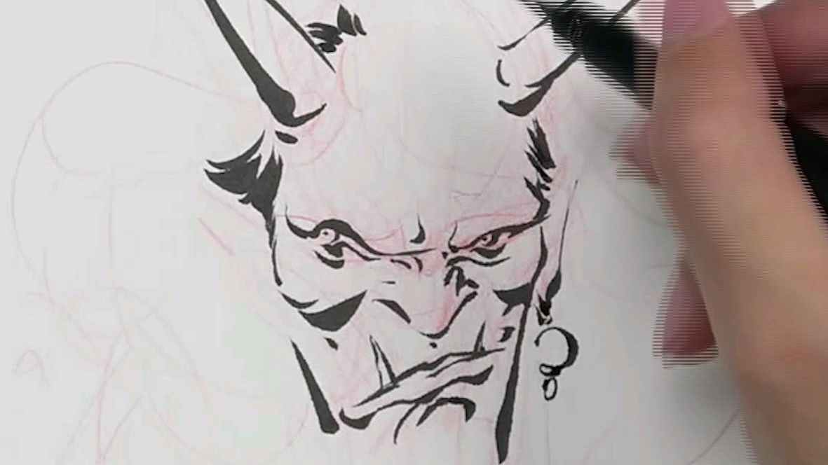 动漫游戏角色设计是要注意线条有实有虚,注意角色的犄角獠牙以及面部刻画#绘画