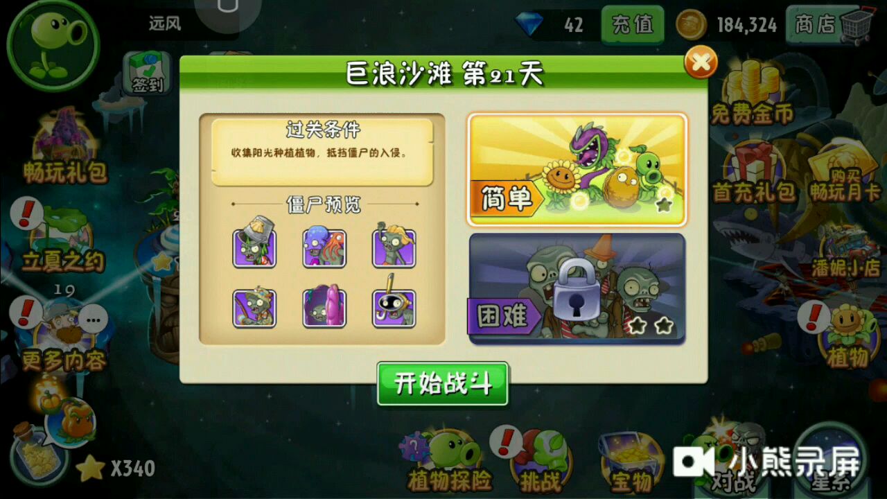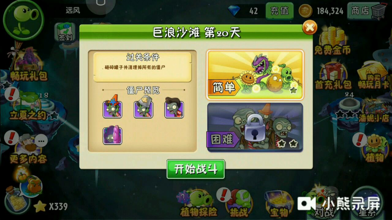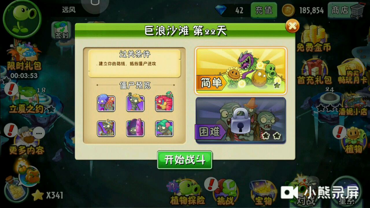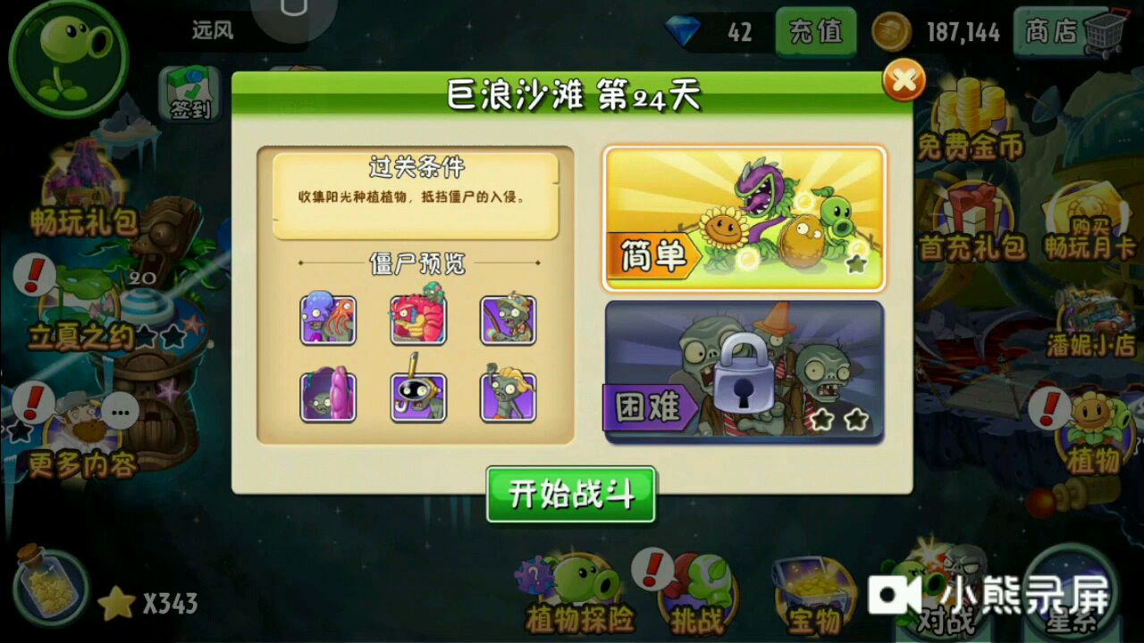 植物大战僵尸二 巨浪沙滩 第一天 困难