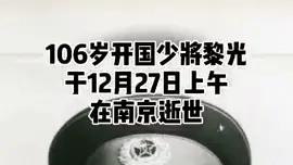 开国少将黎光于12月27日在南京逝世,享年106岁