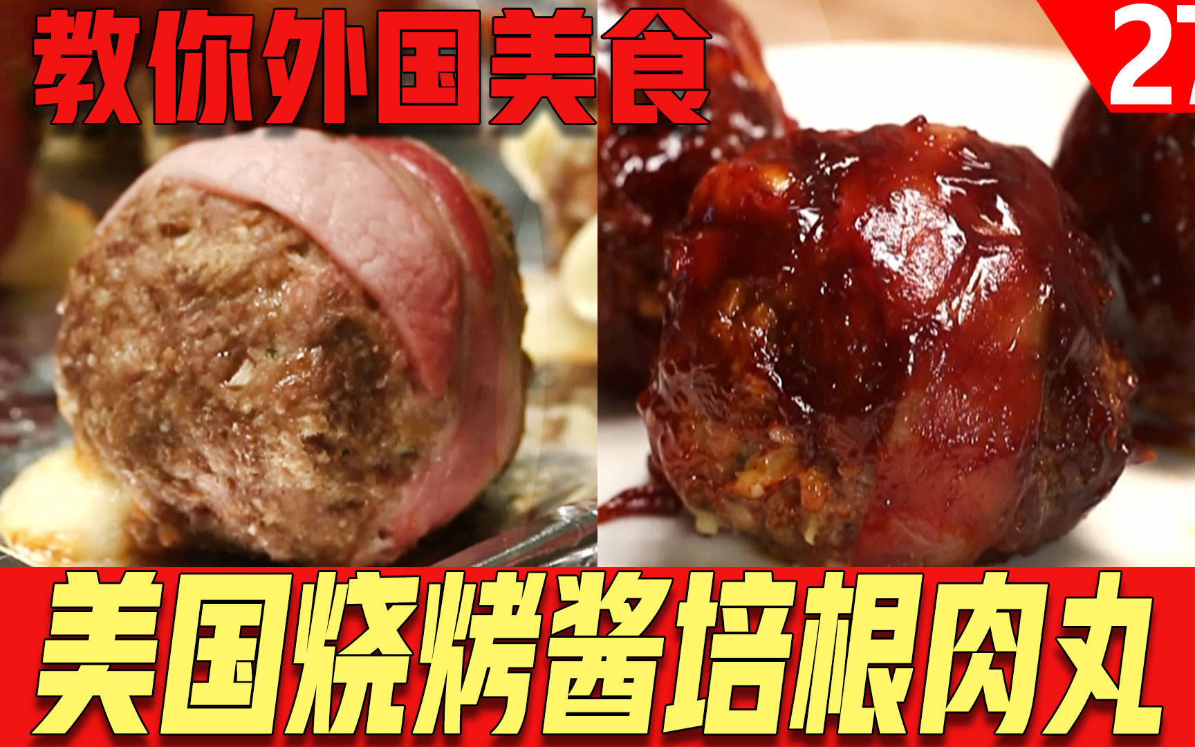 美食教程,美国烧烤酱培根肉丸,好吃的美食烹饪