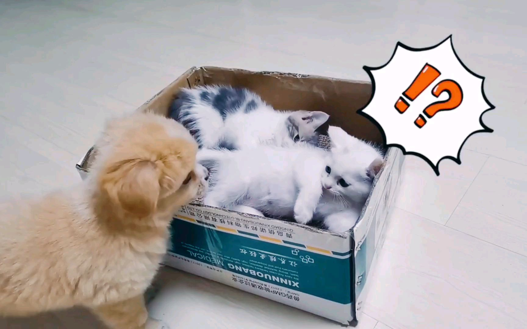 小奶狗欺负小奶猫 遇到猫妈妈秒怂