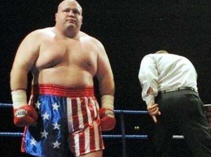 拳王奶油豆被击倒视频,400斤的体重被揍惨了,裁判赶快救命