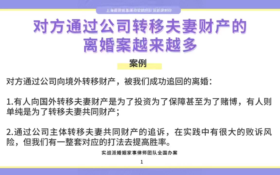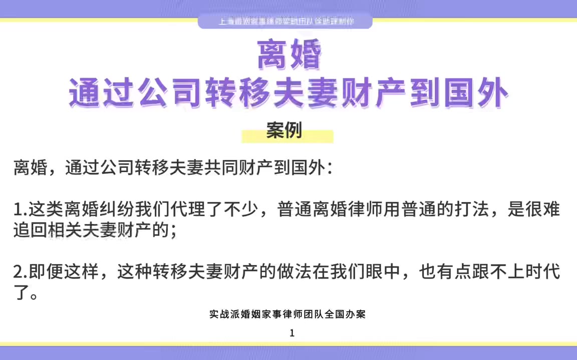 上海离婚律师梁聪律师团队原创:离婚,通过公司转移夫妻财产到国外