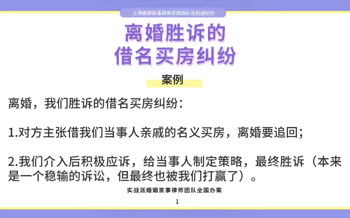 上海离婚律师梁聪律师团队原创:离婚胜诉的借名买房纠纷