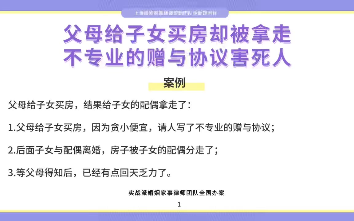 上海婚姻家事律师梁聪:父母给子女买房却被拿走,不专业的赠与协议害死人