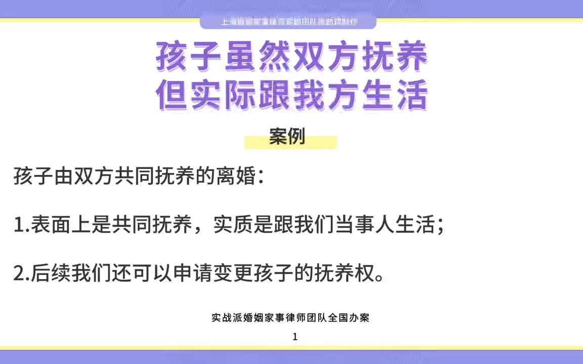 上海离婚律师梁聪律师:孩子虽然双方抚养,但实际跟我方生活