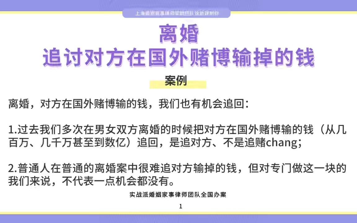 上海离婚律师梁聪:离婚,追讨对方在国外赌博输掉的钱