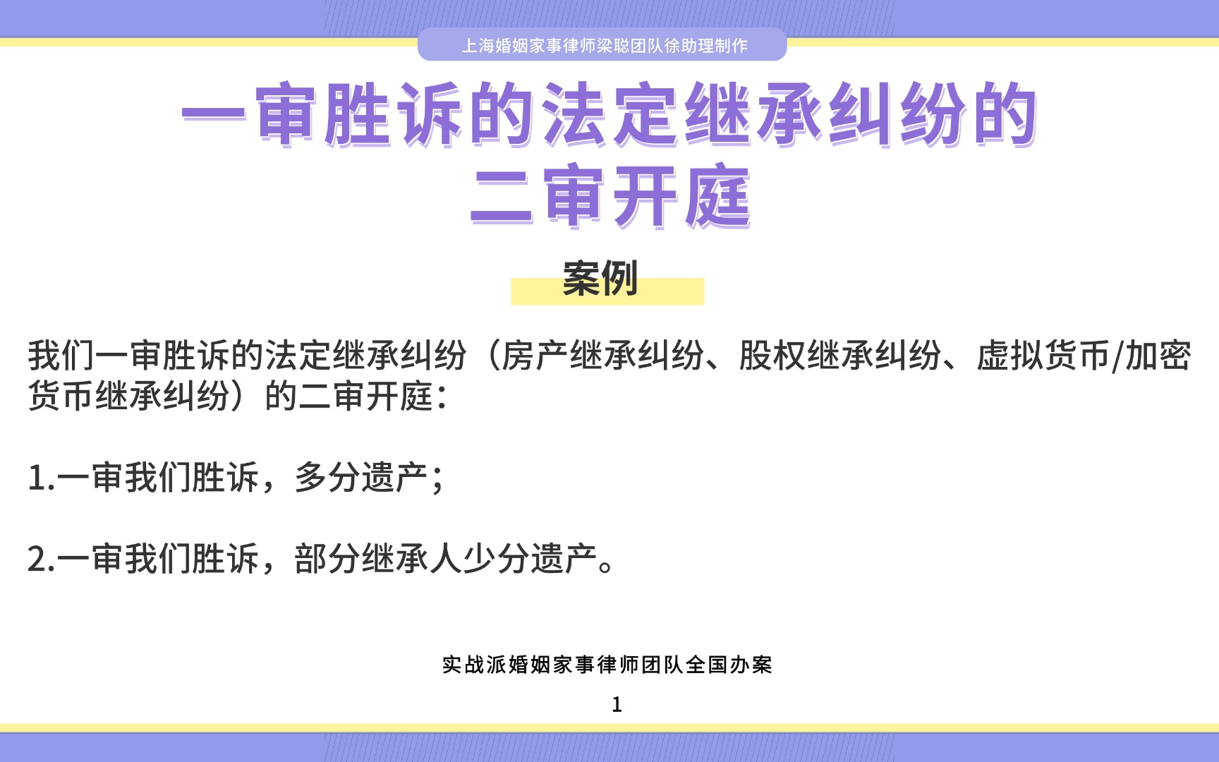 上海离婚律师梁聪律师团队:一审胜诉的法定继承纠纷的二审开庭