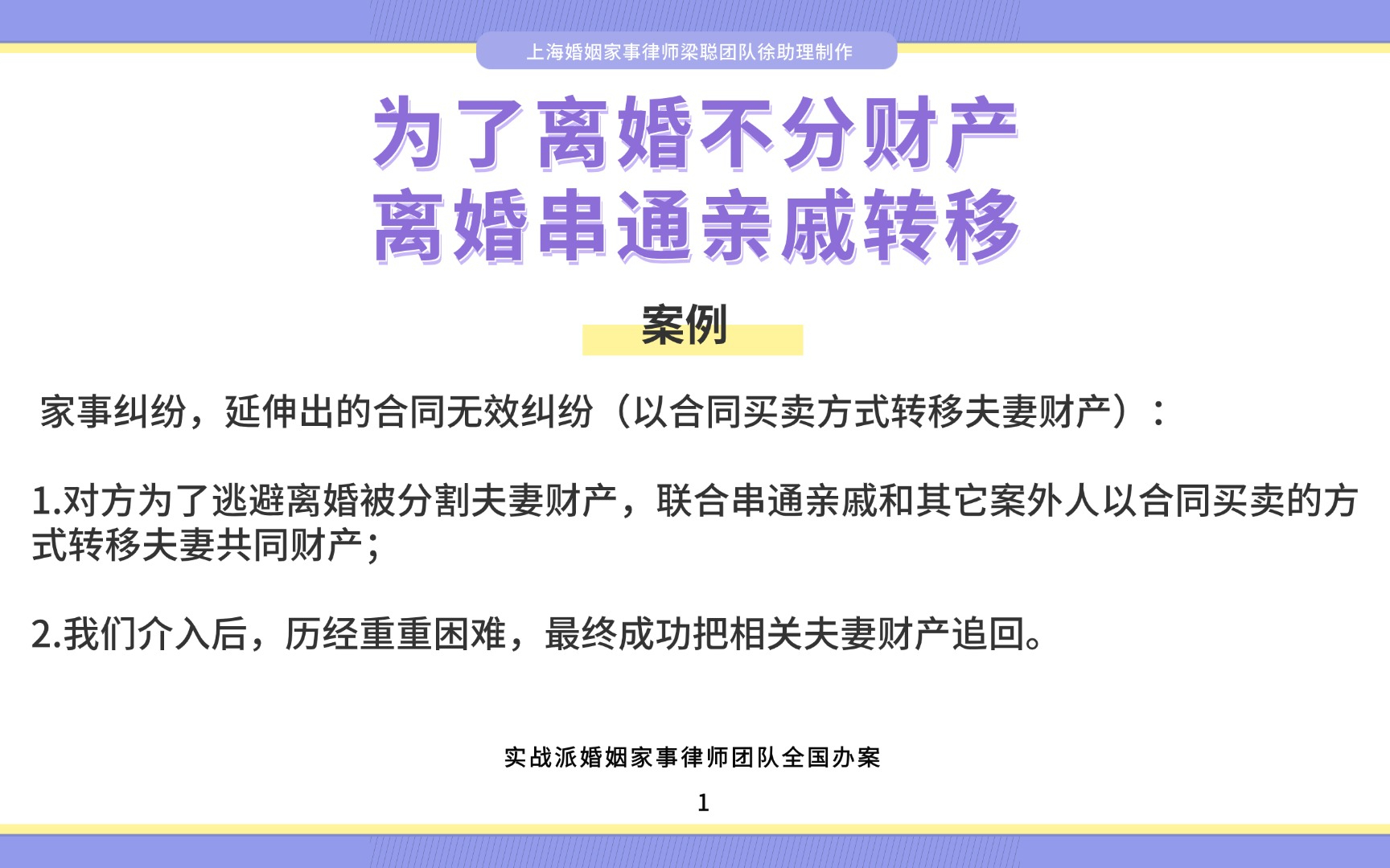 上海婚姻家事律师梁聪律师团队原创:为了离婚不分财产,离婚串通亲戚转移