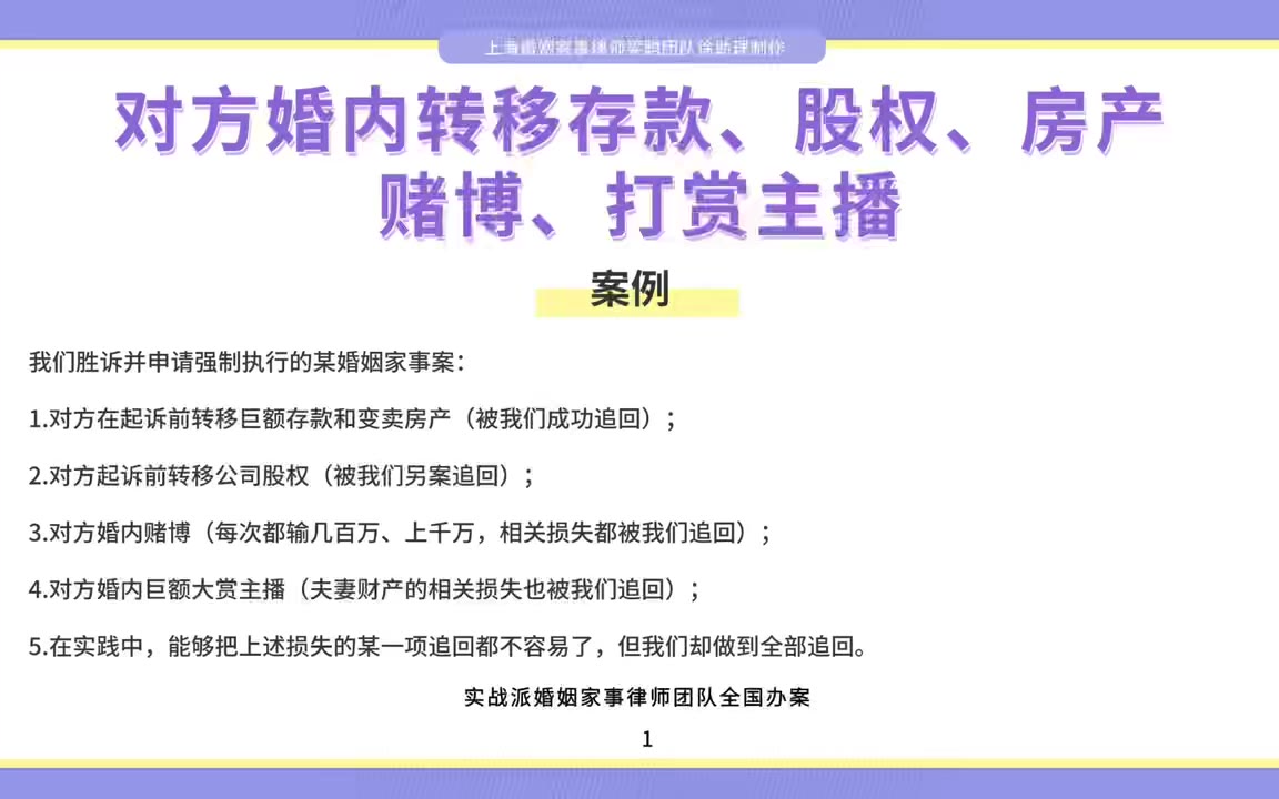 上海律师梁聪:对方婚内转移存款、股权、房产,赌博、打赏主播