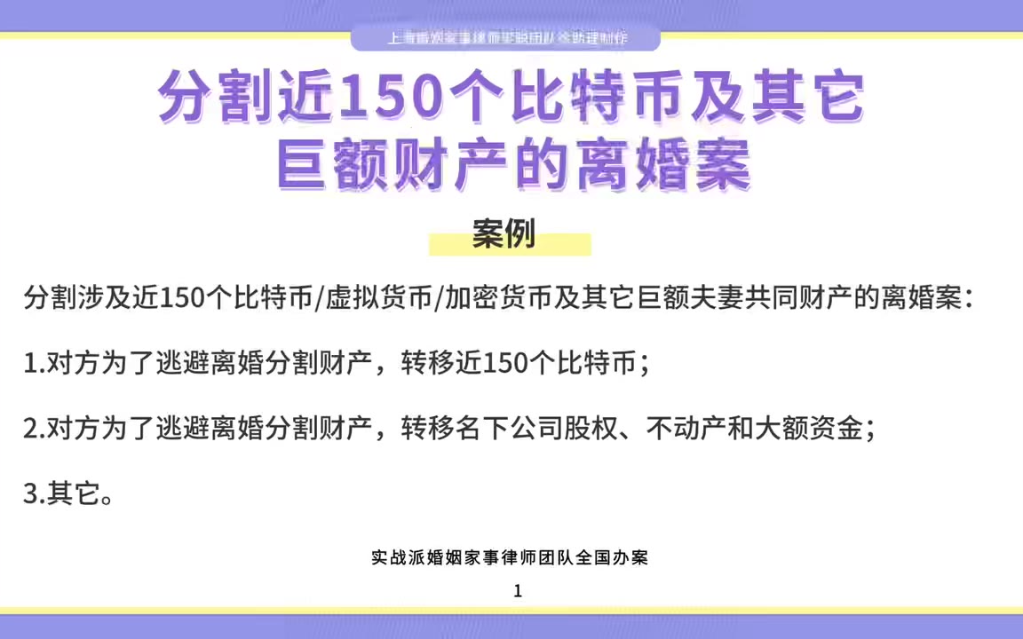 上海婚姻律师梁聪:分割近150个比特币及其它巨额财产的离婚案