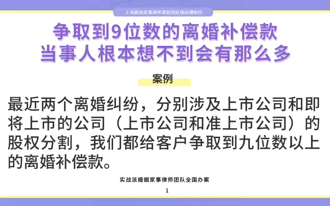 上海律师:争取到9位数的离婚补偿款,当事人根本想不到有那么多