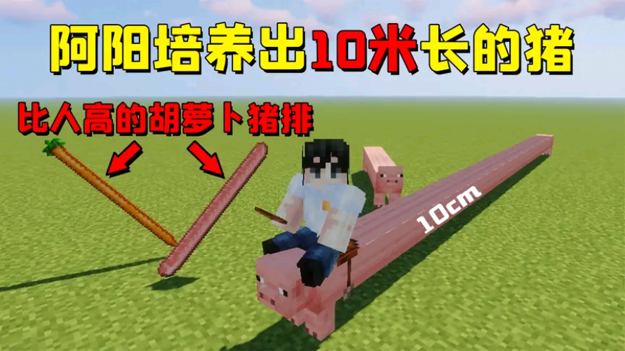 我的世界mod:用秘制胡萝卜养出10米长的猪,掉落的猪排比人还高