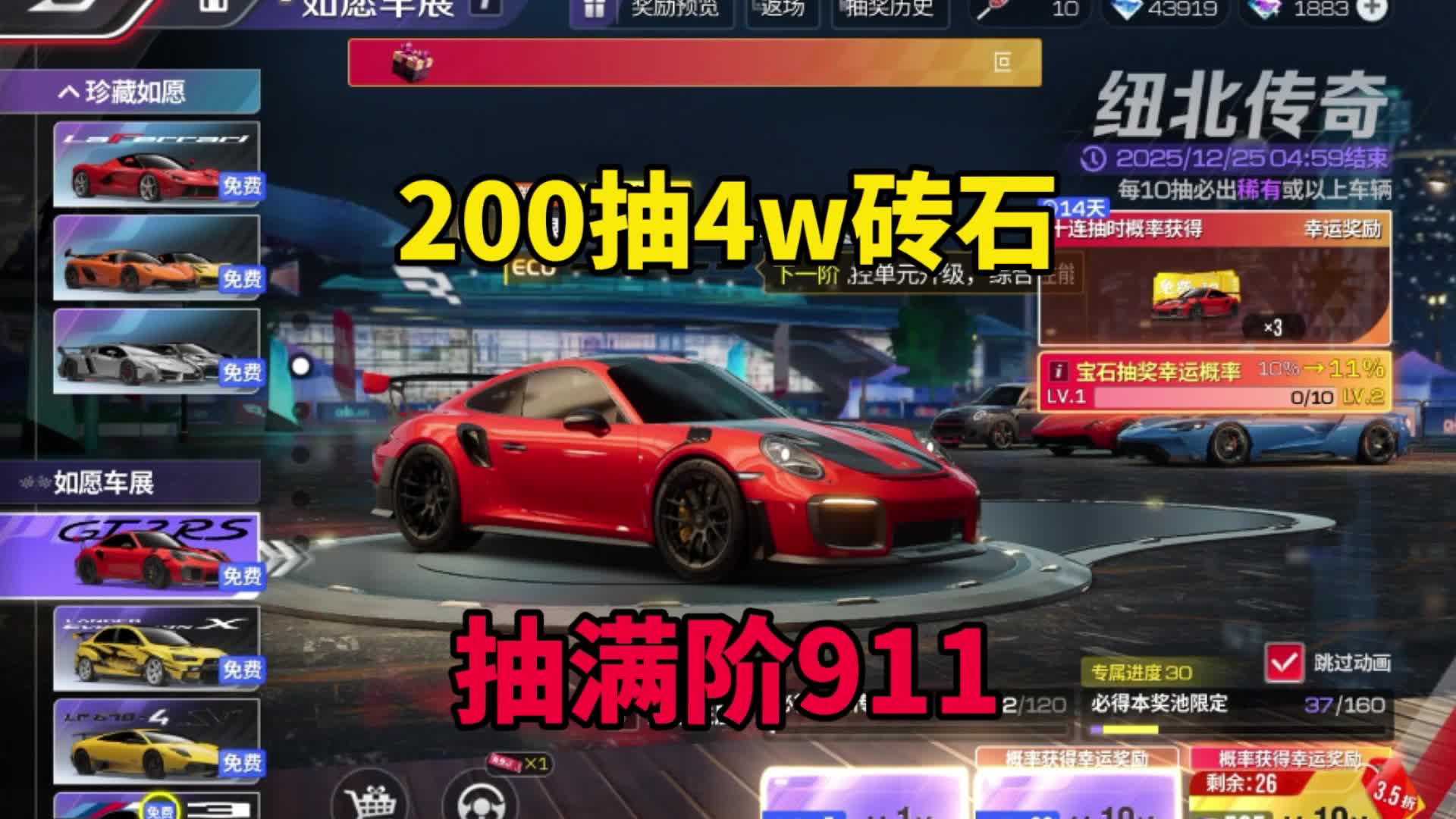 巅峰极速:200抽4万钻石抽保时捷911,能出满阶吗