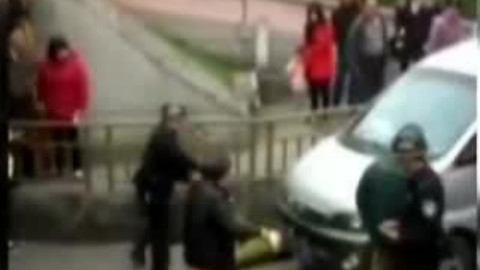 众人顶住下滑车辆救人