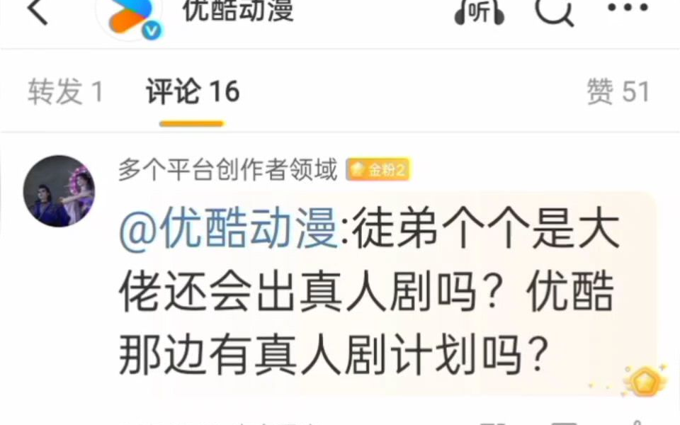《徒弟个个是大佬真人剧》优酷动漫官方未回复