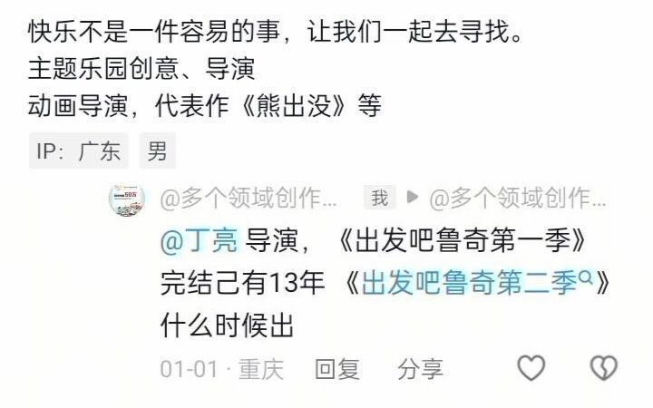 《出发吧鲁奇第一季》完结己有13年 《出发吧鲁奇第二季》丁亮官方导演未回复
