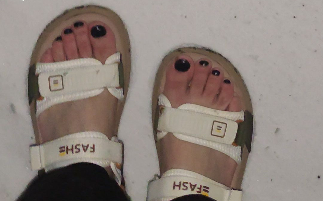 白雪黑甲凉鞋脚