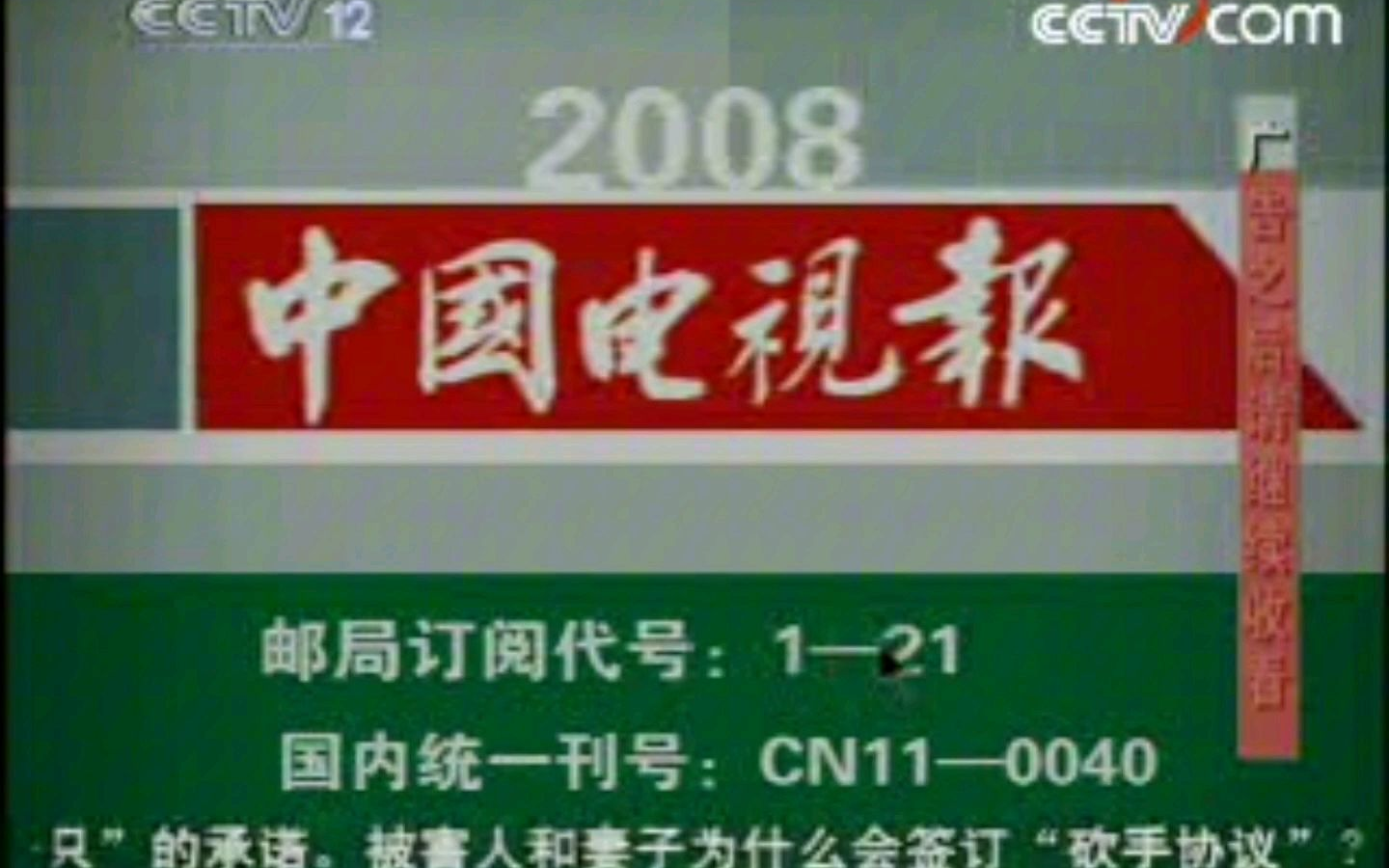 【放送文化】CCTV-12社会与法频道《庭审现场》之前及之后的广告 2008.3.22期