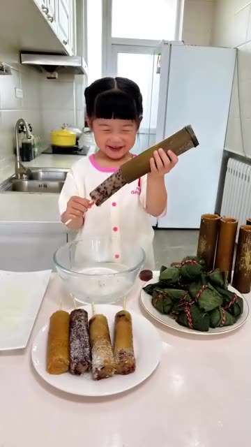 快过端午节了,妈妈不会包粽子,闺女做了蜜枣粽,咸蛋黄肉粽和竹筒粽,可好吃啦 ...