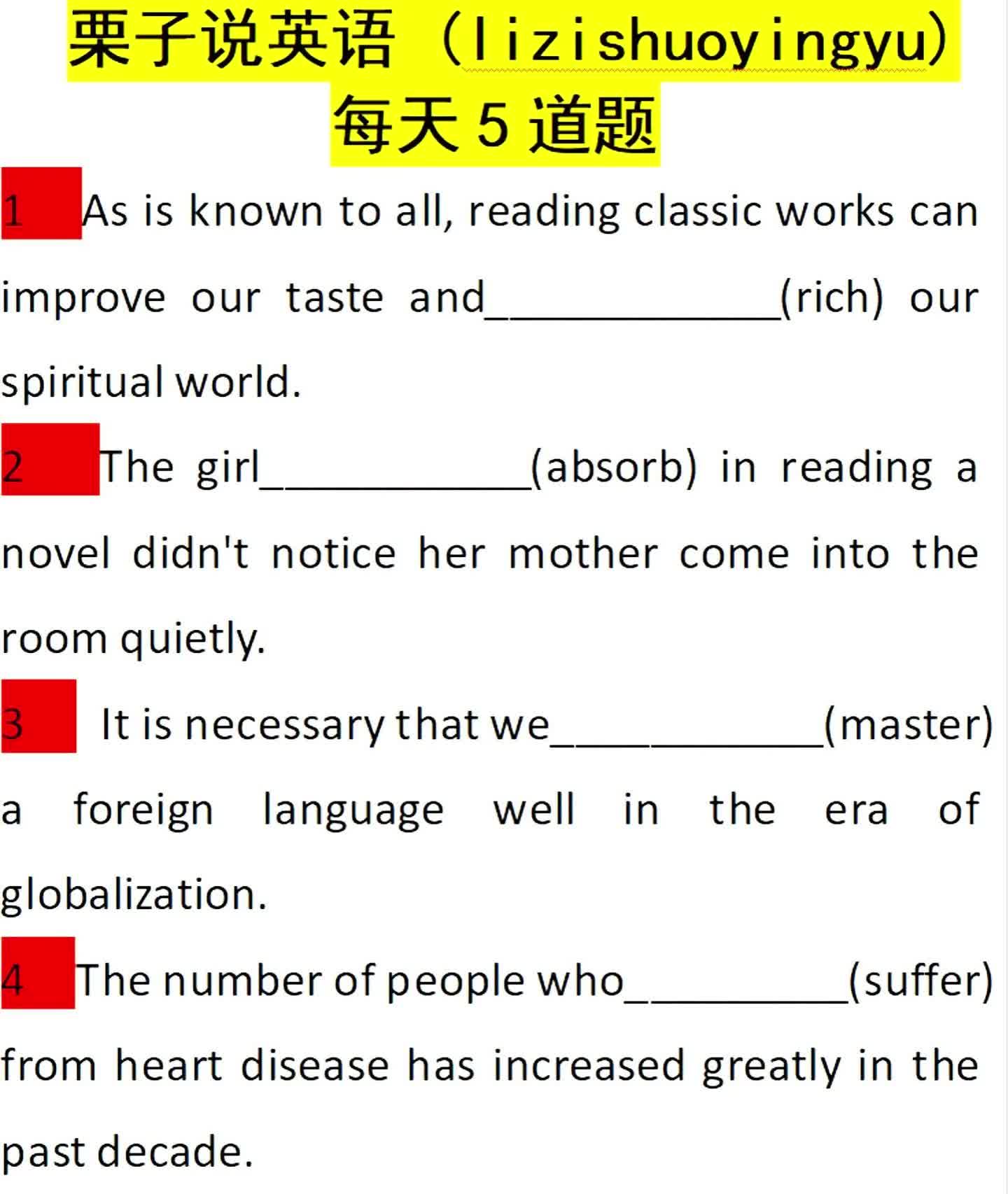 每天5道题:用所给单词的适当形式填空