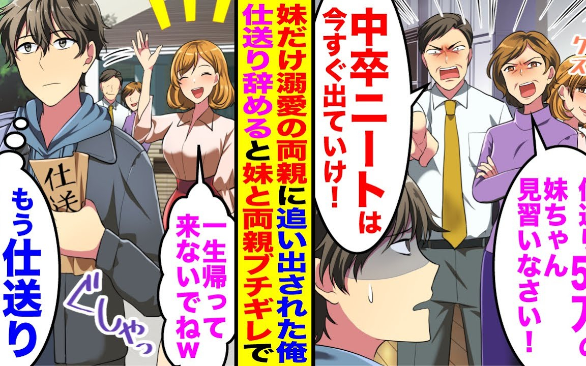 【漫画】妹だけ溺愛する両親に「仕送り50万の妹ちゃん見習え!」「中卒のニートは今すぐ出ていけ!」実家