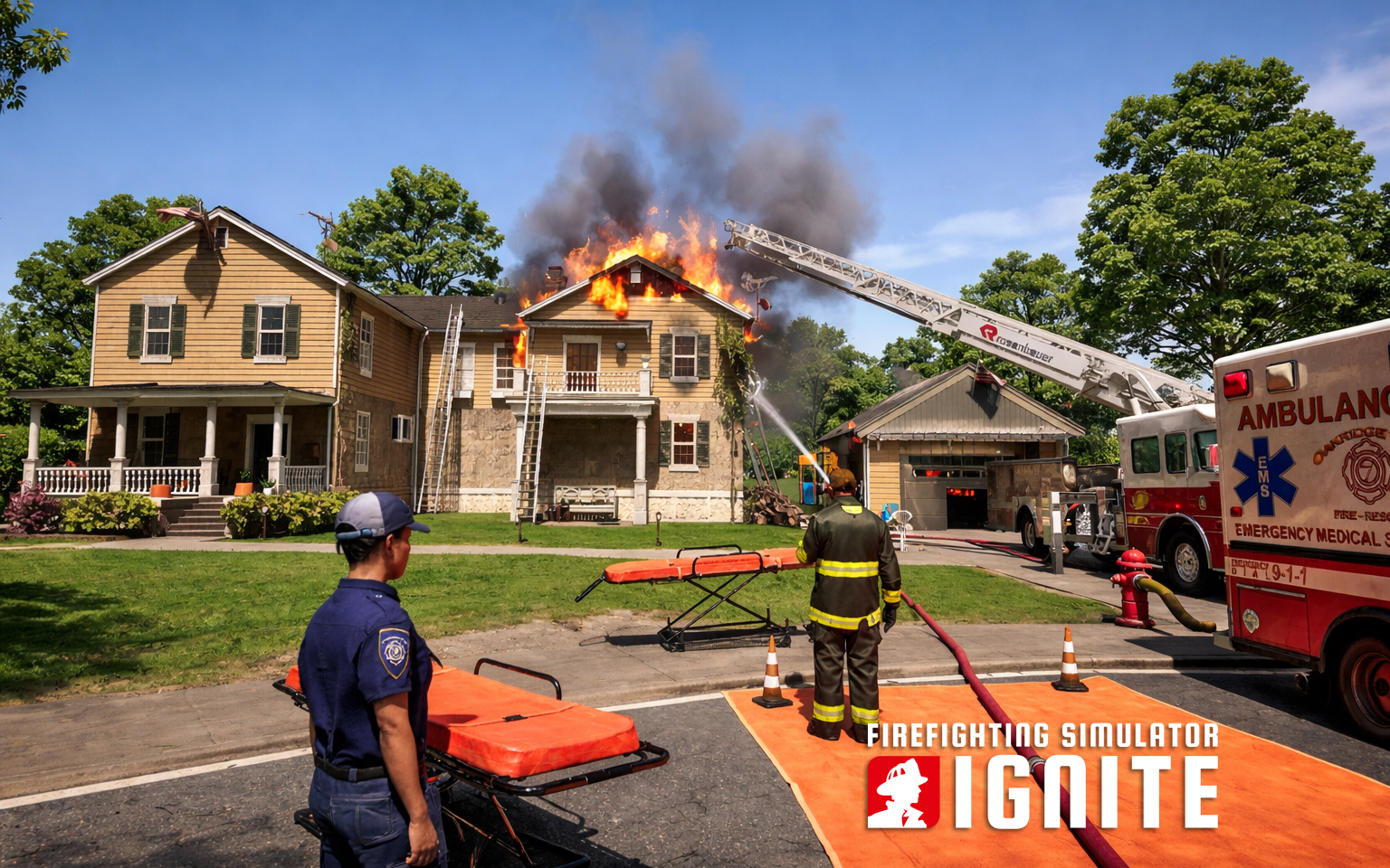 《消防模拟:火苗燃动》出车去救援一个刚翻新的布克公馆
