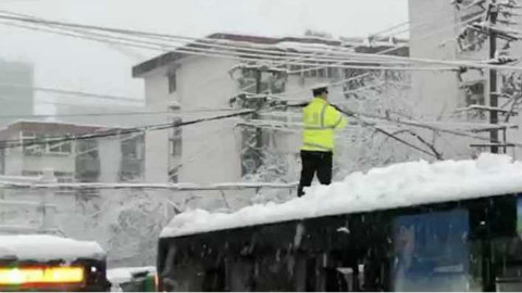 致敬!大雪压电缆,协警站车顶托举