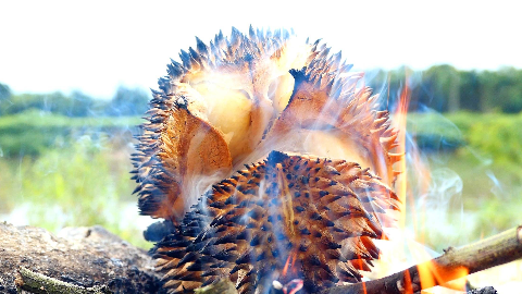 榴莲经过炭火烤制后,味道更加浓郁更甜了,口感也会比原来的要好,吃起来就像软软的雪糕。所以喜欢吃榴莲的朋友一定要尝试一下这种吃法。