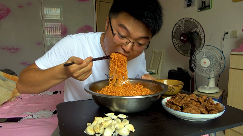 两斤卤水鸡杂吃一斤火鸡面,大蒜配火鸡面,大sao这顿饭失蒜了