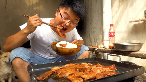 大sao新制一套铁板,两斤铁板五花打底,米饭加大蒜,这滋味真爽
