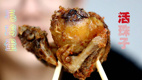 有鸡毛还有未孵化小鸡的鸡蛋你们敢吃不?第一次吃烤毛蛋胆战心惊,不过炸鸡腿和烤豆皮可真香啊!