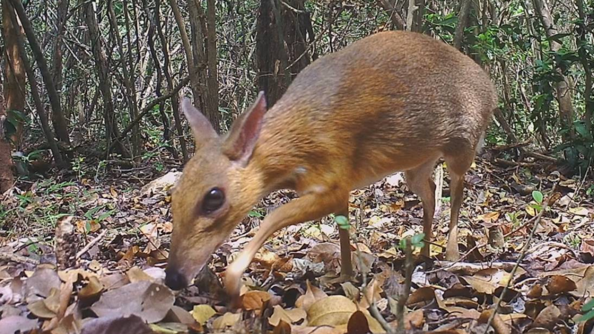越南鼷鹿是体型只有兔子大小的有蹄类动物,长久以来被认为可能已经灭绝,近30年来首次在越南丛林中被拍摄到。具体的拍摄日期是一年前。这在生态研究中很常见,你会布置很多红外相机,拍到很多视频,然后过了很久你才把曾经的某一部分视频分析完,然后,你发现了一只兔子大小的鹿= =。2019.11.14