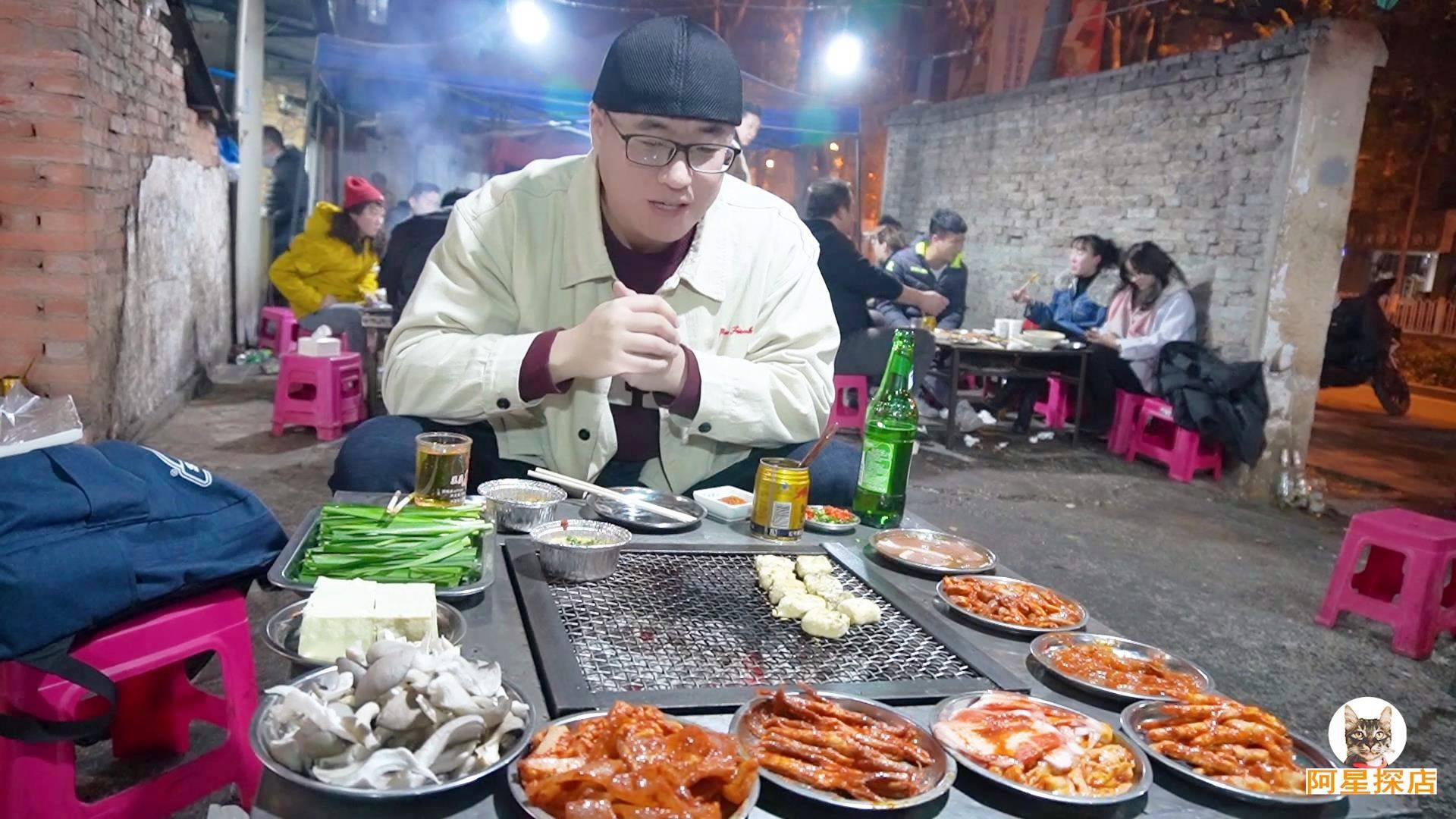 【阿星探店】有一种烧烤叫云南烧烤,昆明街头烧烤摊,碳火冒烟,蘸水地道