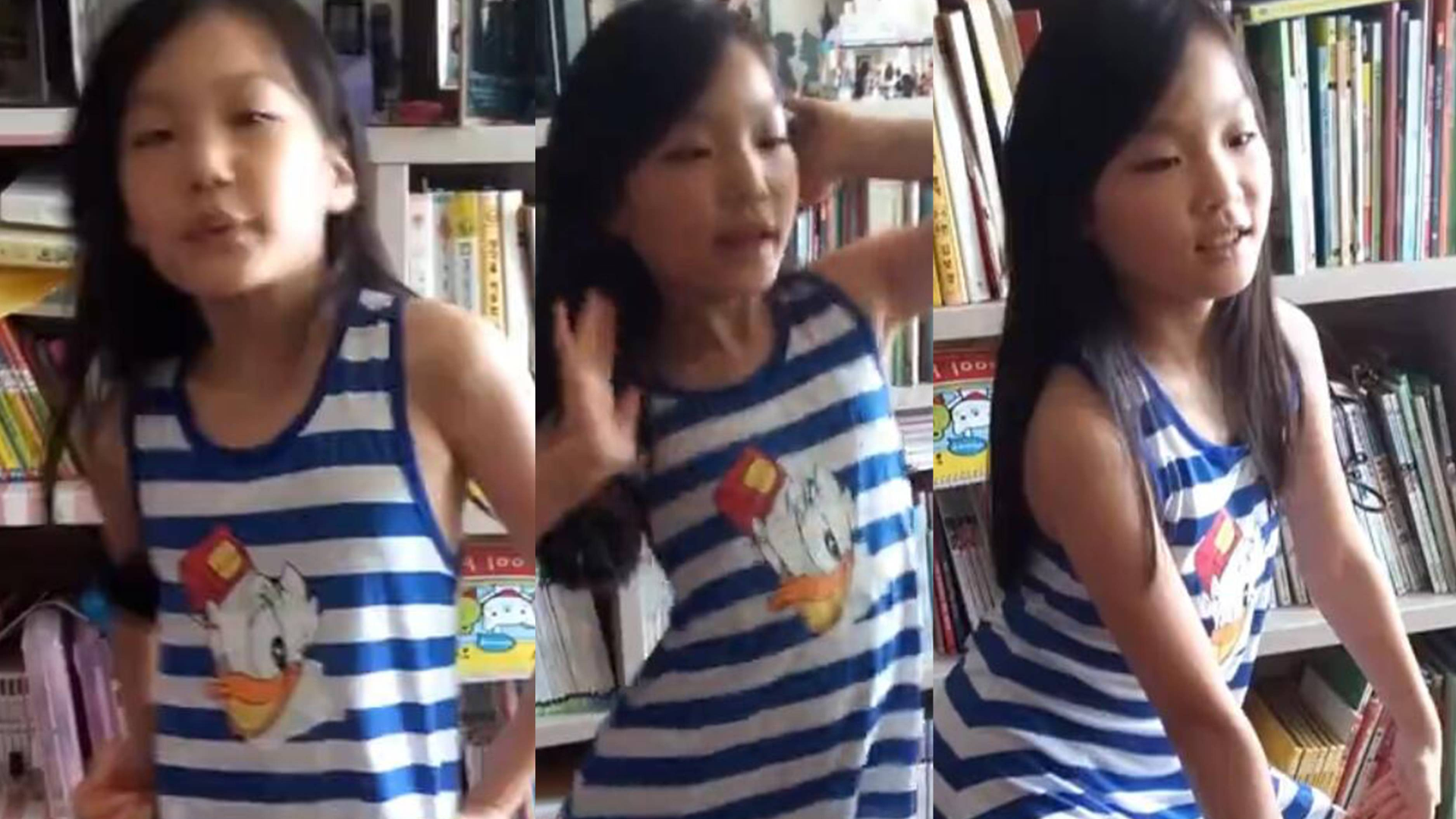 小学女生在家中独自排练的场面