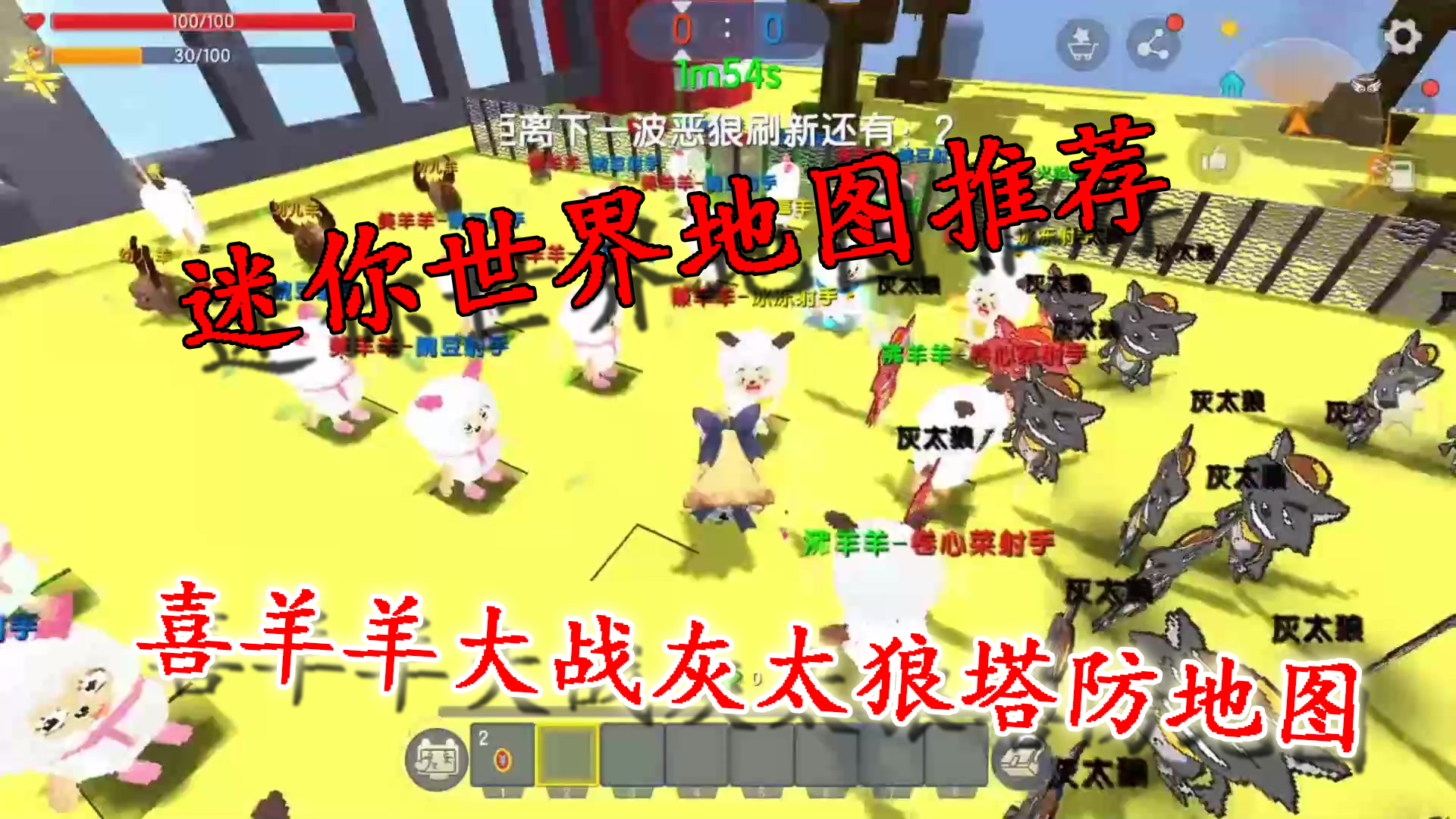 迷你世界地图推荐,喜羊羊大战灰太狼塔防地图试玩,狼羊攻守大战