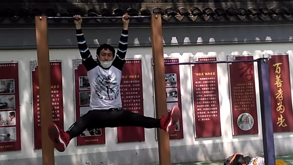 Strongart教授表演肥宅单杠悬垂绕腿