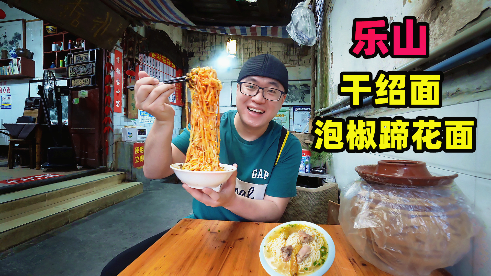 四川乐山街角面馆,30年老味道,干绍面咸香,泡椒蹄花面酸辣劲爽