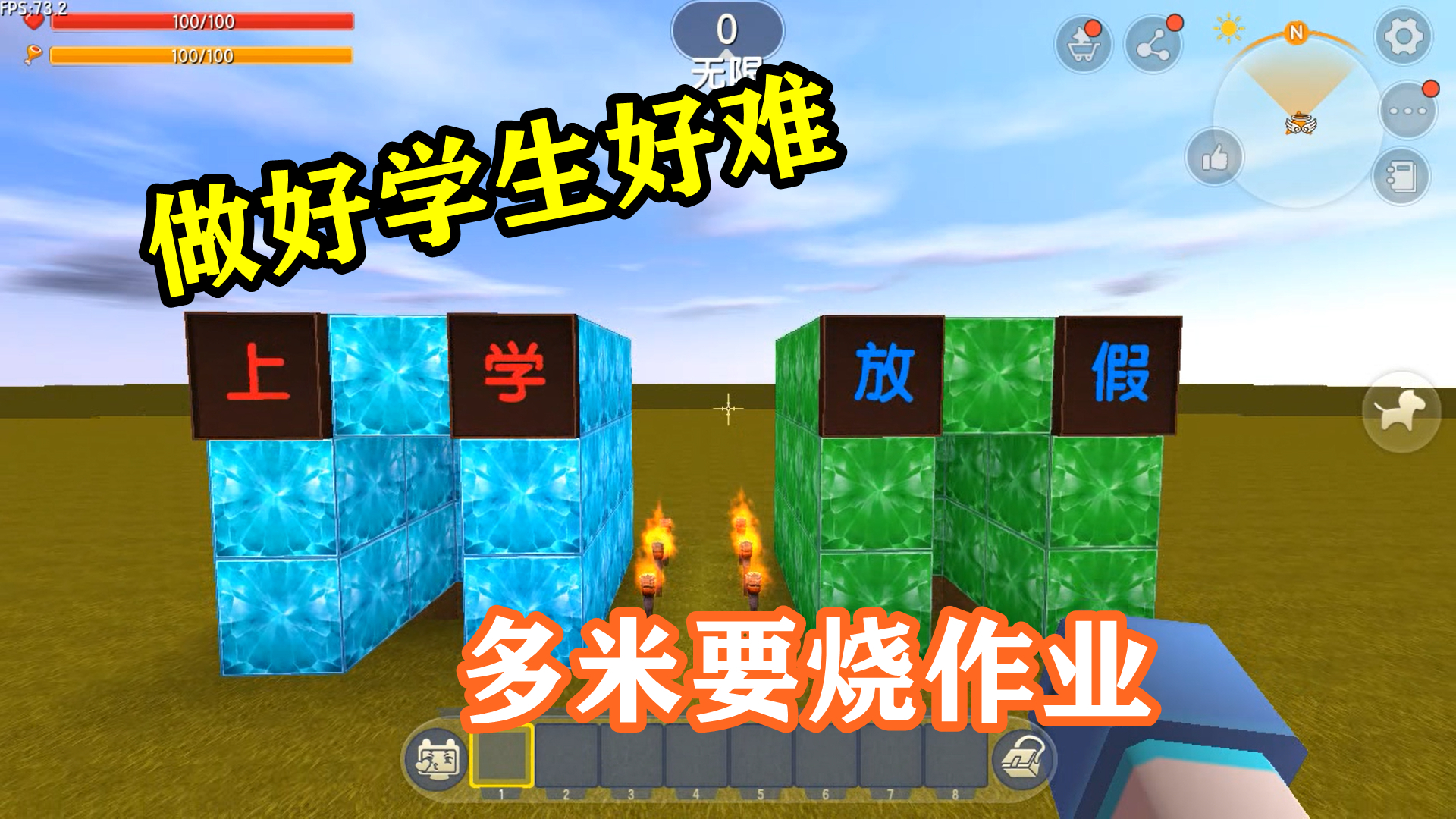 迷你世界开学VS放假,多米上学得到满满一箱子作业,吓得赶紧烧了