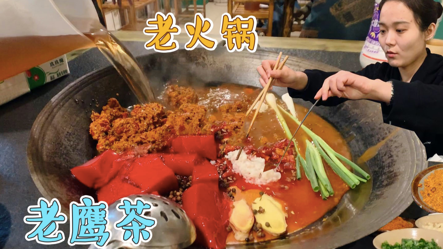 成都藏在老小区里的老火锅,大铁锅老鹰茶煮汤,手工肉吃起来爽
