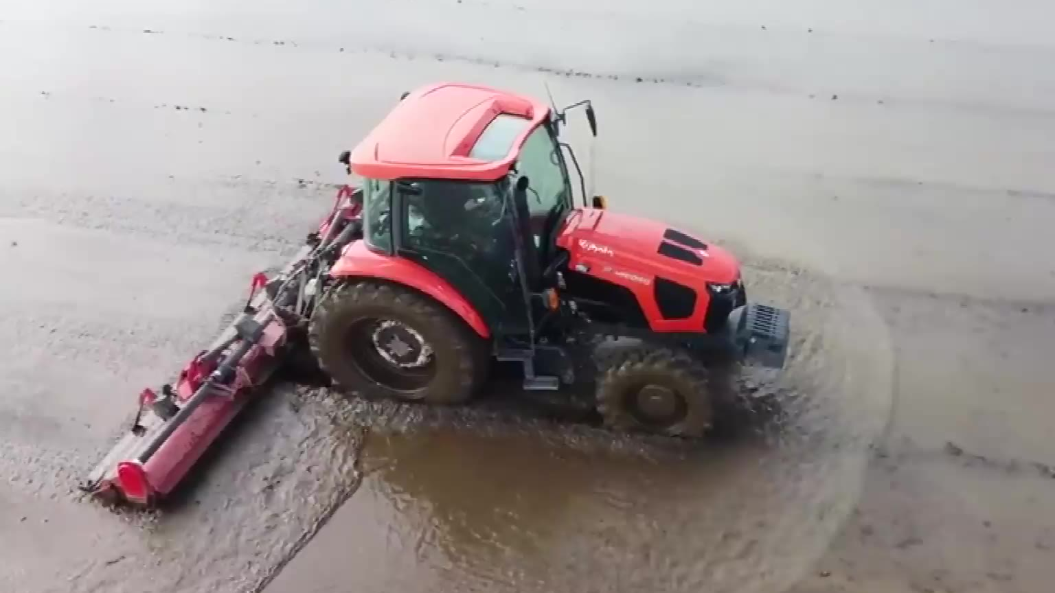久保田拖拉机带打浆机,配套水平控制系统,水田整地那叫一个平啊