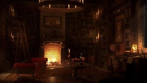 视频原名:Ancient Library Room - Relaxing Thunder & Rain Sounds, Crackling Fireplace